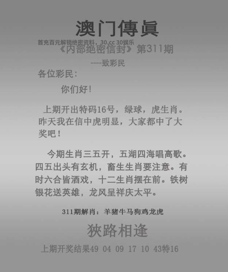 | 传真314期 更新中 更新中 解:更新中 无敌九肖:更新中 |